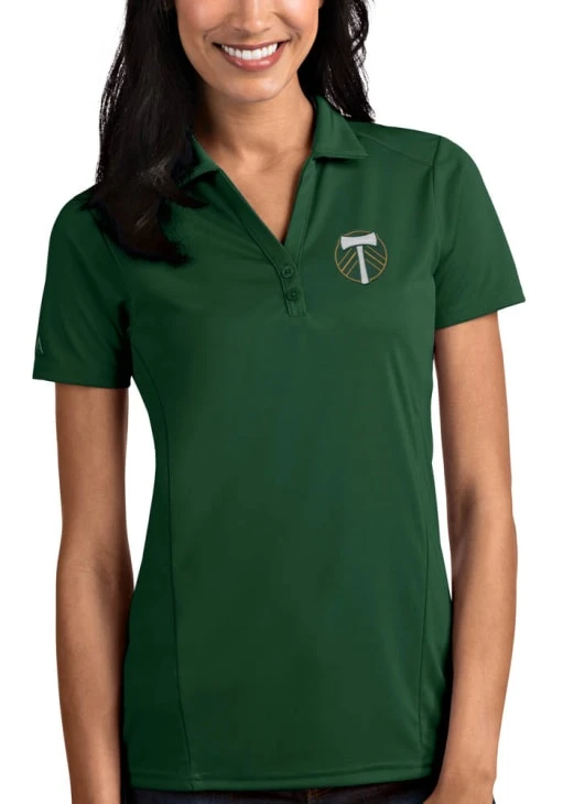 Antigua Portland Timbers Womens Green Tribute Short Sleeve Polo Shirt